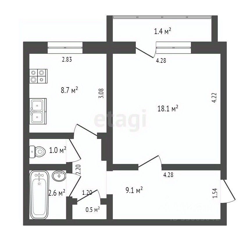 41,4 м²