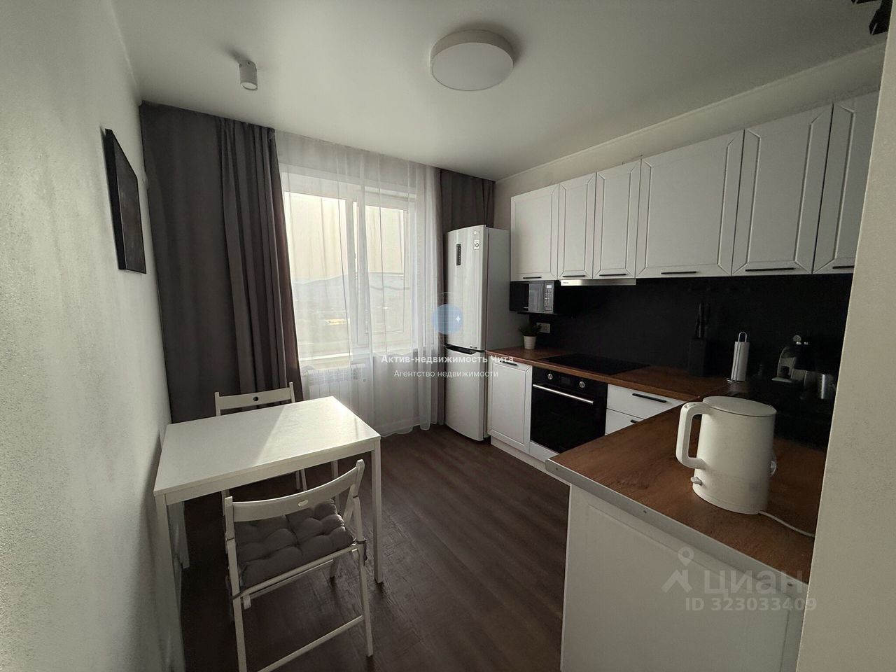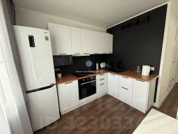 • Кухню, где есть кухонный гарнитур и вся необходимая техника (холодильник, микроволновая печь, вытяжка, индукционная плита и духовой шкаф)
