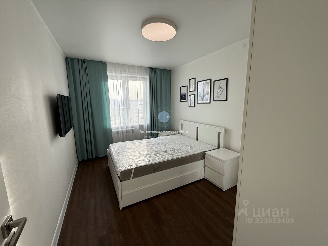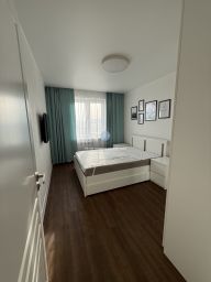 • Спальню с кроватью, тумбами, просторным бельевым шкафом и телевизором