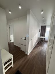 Во всех комнатах установлены светильники с регулируемой яркостью и температурой света. Стены выровнены и окрашены, на полу уложена долговечная ПВХ плитка, окна пластиковые, в санузле кафель и керамогранит. Установлены качественные межкомнатные двери.