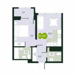 Общая площадь42,7 м²