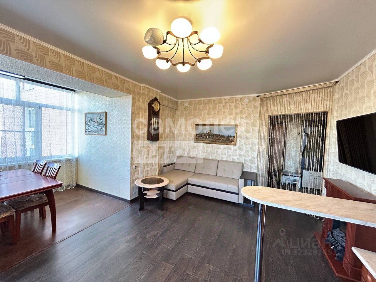 Жемчужина квартиры - объединенная с комнатой лоджия с большим окном. Ваши завтраки и ужины будут сопровождаться панорамными видами , а интерьер наполнен светом в любое время дня. Гордость квартиры - великолепная кухня из массива дерева.