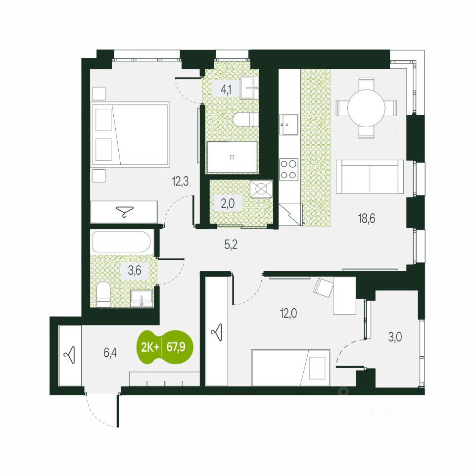 Общая площадь67,9 м²