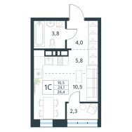 Продается 1-комн. квартира площадью 26,4 кв.м, без отделки. Квартира расположена на 8 этаже 10 этажного монолитно-кирпичного дома (Литер 3 (3 очередь), Секция 1) в ЖК "Хороший" от АТОЛЛ.