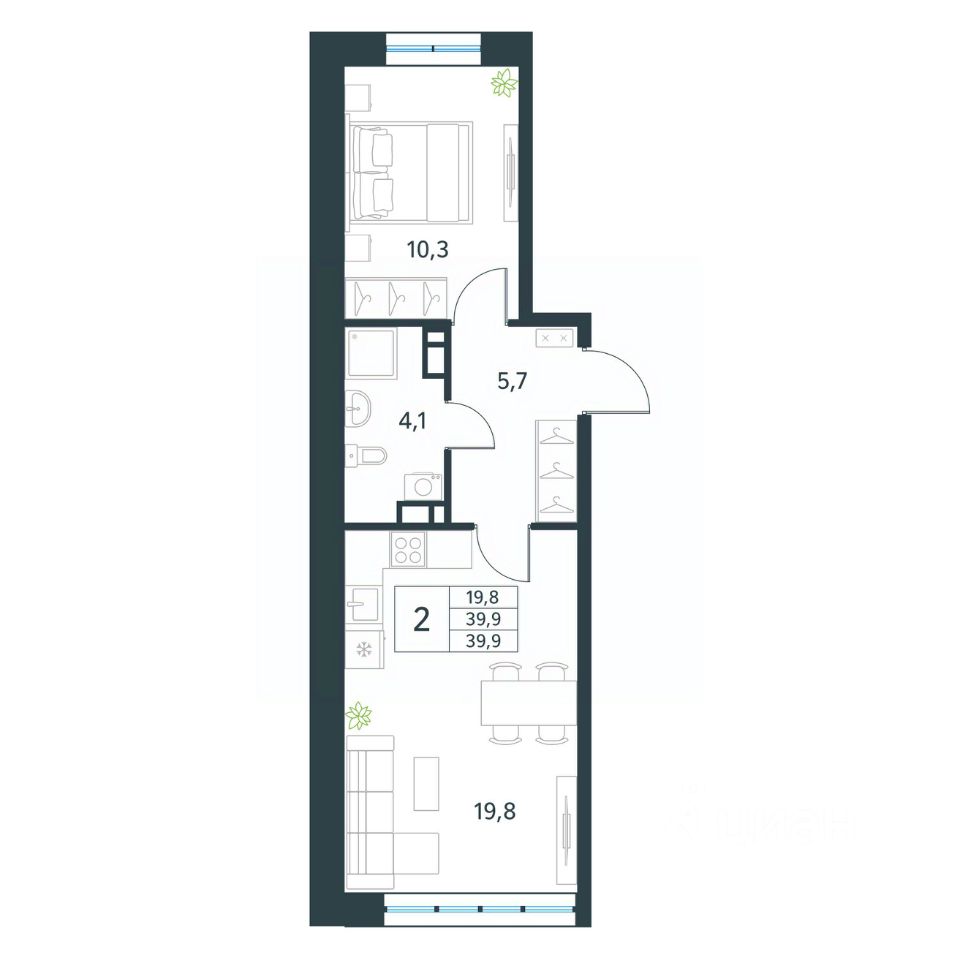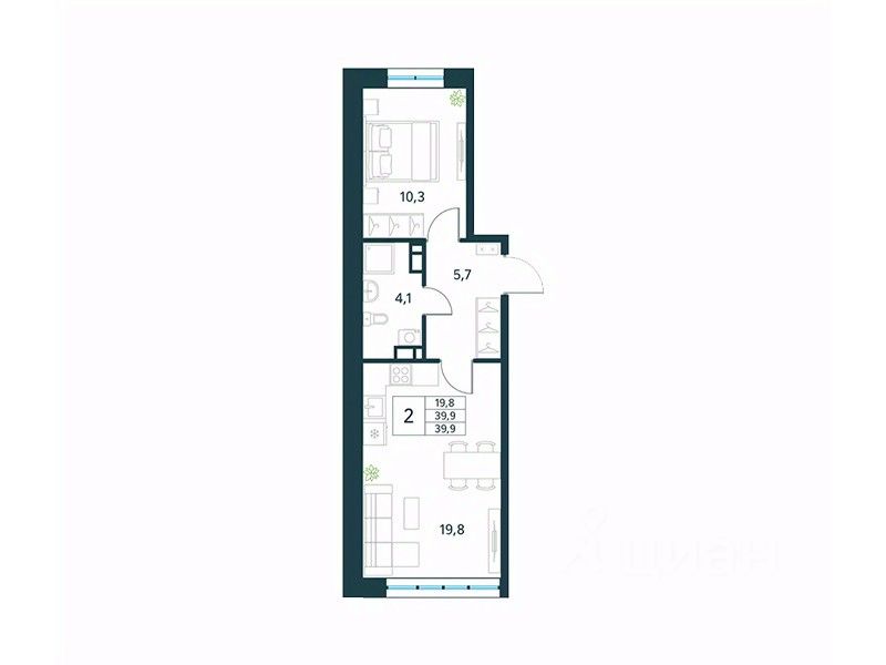 Продается 2-комн. квартира площадью 39,9 кв.м, без отделки. Квартира расположена на 5 этаже 10 этажного монолитно-кирпичного дома (Литер 3 (3 очередь), Секция 1) в ЖК "Хороший" от АТОЛЛ.