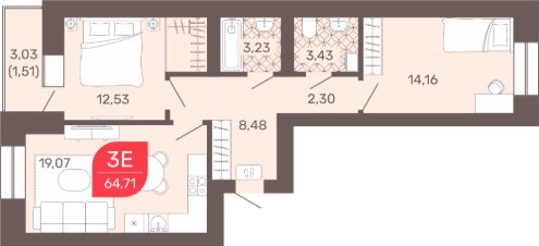 Общая площадь65,4 м²