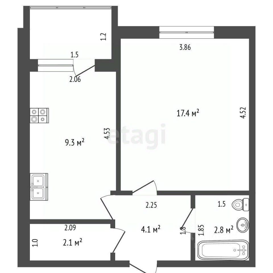9,3 м²