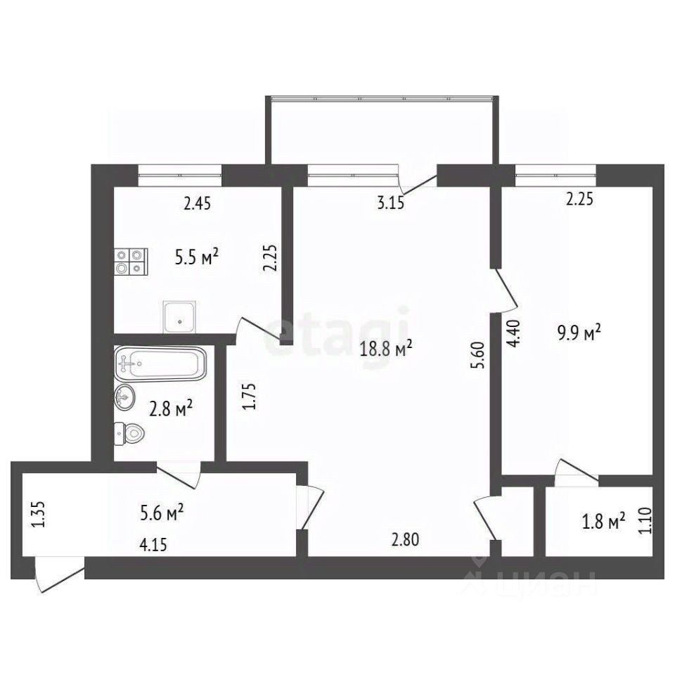 45 м²