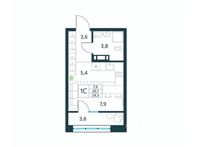 Продается 1-комн. квартира площадью 24,3 кв.м, без отделки. Квартира расположена на 16 этаже 18 этажного монолитно-кирпичного дома (Литер 2 (3 очередь), Секция 1) в ЖК "Хороший" от АТОЛЛ.