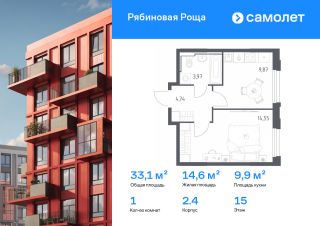 Строим кварталы для жизни с заботой о будущем. Предлагается 1-комнатная квартира комфорт-класса 33,13 кв.м в корпусе 2.4 на 15 этаже, в ЖК "Рябиновая Роща"