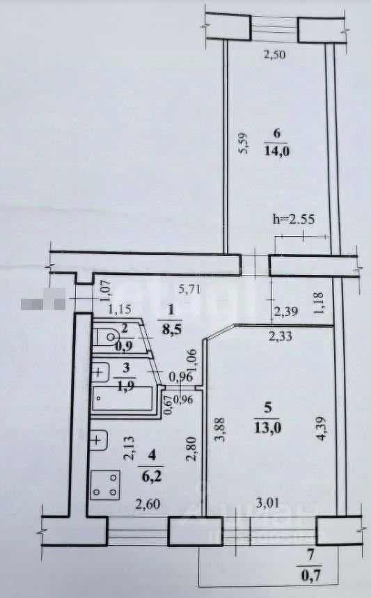 Квартира площадью 45,2 кв.м. расположена на втором этаже пятиэтажного дома в центральном, но тихом районе города.