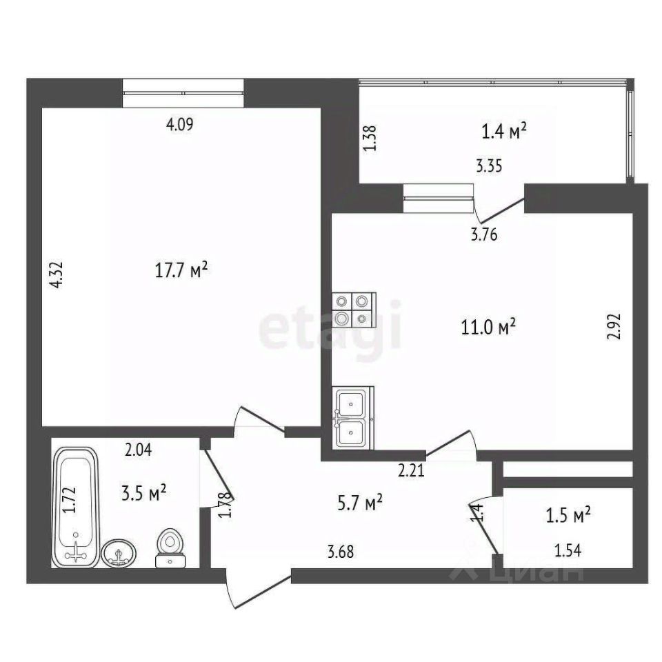 39,4 м²