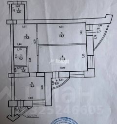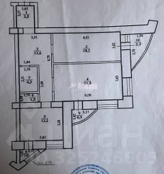 Планировка квартиры с раздельными комнатами, общая площадь составляет 75 квадратных метров.