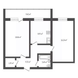 во двор дома. Функциональная планировка квартиры: кухня 9 кв.м, две изолированные комнаты, 18,9 и 16,5 кв.м, санузел совмещенный, в квартире предусмотрена гардеробная, есть просторная остеклённая лоджия.