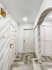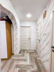Сделан ремонт, заменена вся сантехника, поклеены обои, сделаны натяжные потолки, в гостиной и спальне на полу постелен ламинат, на кухне и в коридоре линолеум, санузел раздельный, полностью облицован плиткой, балкон полностью застеклён и обшит вагонкой!