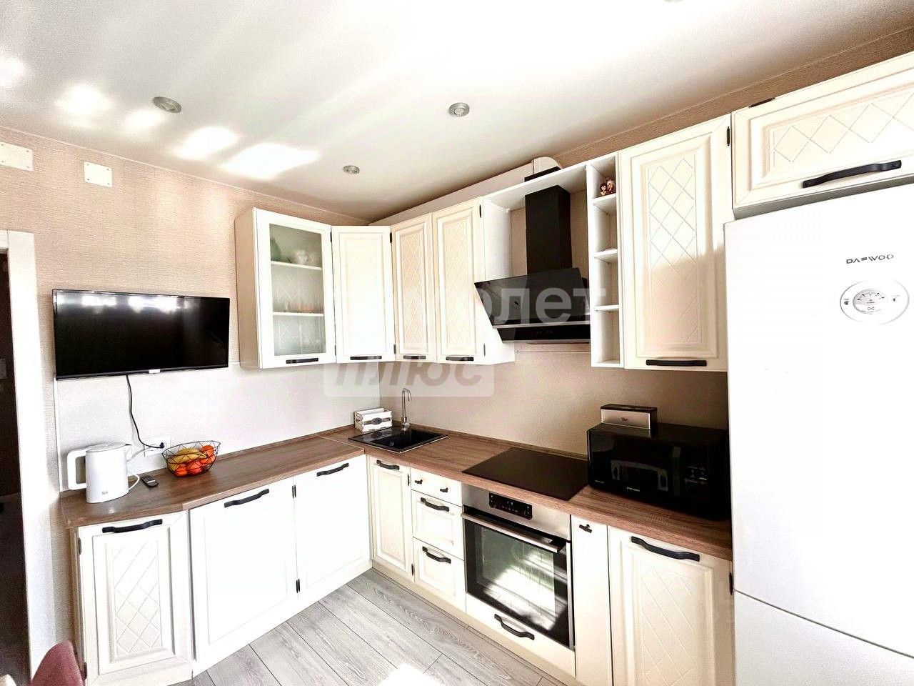 Остается кухонный гарнитур,встроенная техника.