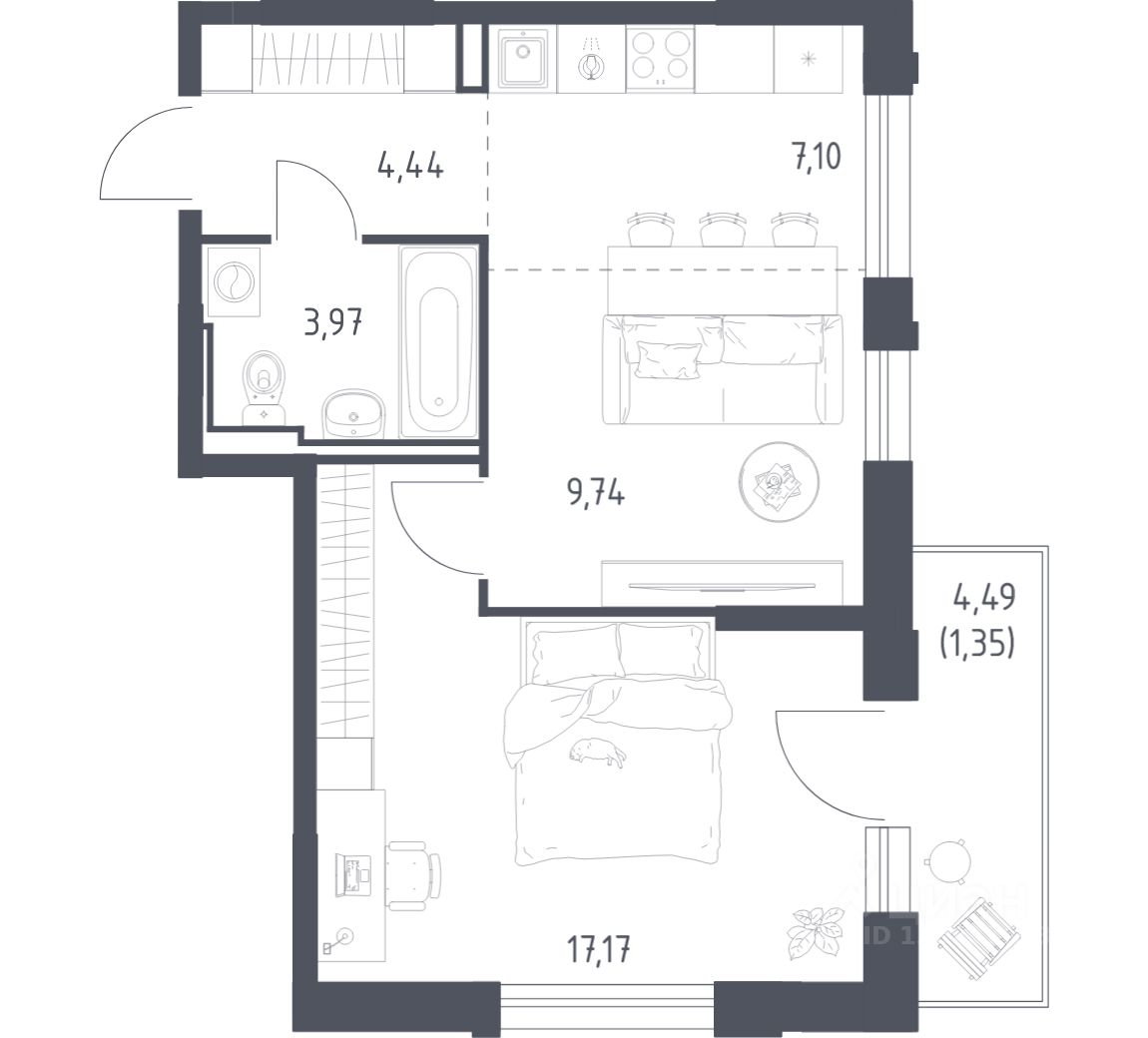 Квартиры без отделки. Доступность опции "отделка" и возможность комплектации мебелью и декором уточняйте у застройщика.