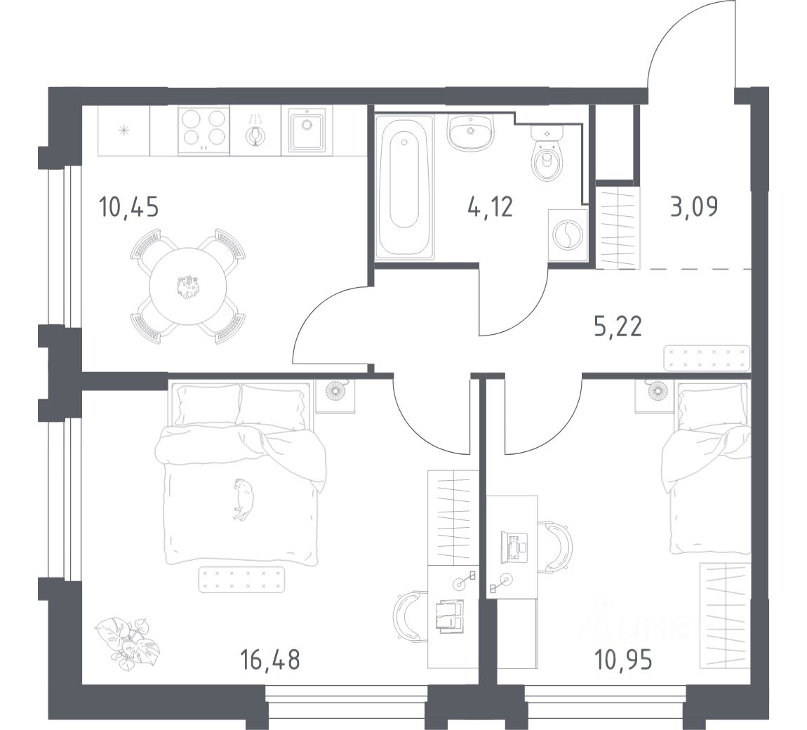 Квартиры без отделки. Доступность опции "отделка" и возможность комплектации мебелью и декором уточняйте у застройщика.
