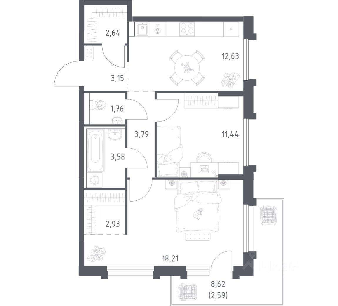 Квартиры без отделки. Доступность опции "отделка" и возможность комплектации мебелью и декором уточняйте у застройщика.