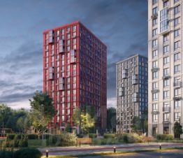 "Рябиновая Роща" — это комплекс с домами высотой от 9 до 17 этажей в монохромных оттенках с красными акцентами.