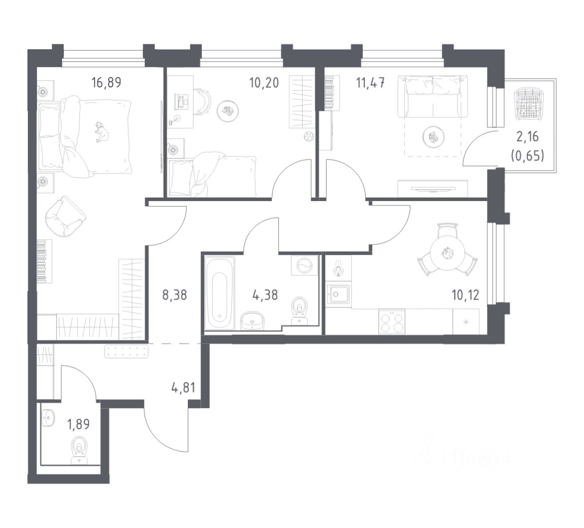 Строим кварталы для жизни с заботой о будущем. Предлагается 3-комнатная квартира комфорт-класса площадью 68.79 кв.м в корпусе 1.2КВ на 17-м этаже, в жилом комплексе "Рябиновая Роща".