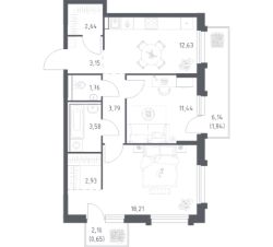 Строим кварталы для жизни с заботой о будущем. Предлагается 2-комнатная квартира комфорт-класса площадью 62.62 кв.м в корпусе 1.2КВ на 8-м этаже, в жилом комплексе "Рябиновая Роща".