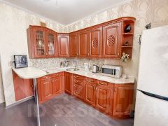 • Премиальные материалы: Кухня выполнена из натурального массива дерева - классика и надежность на десятилетия. В санузле установлена качественная дорогая сантехника.