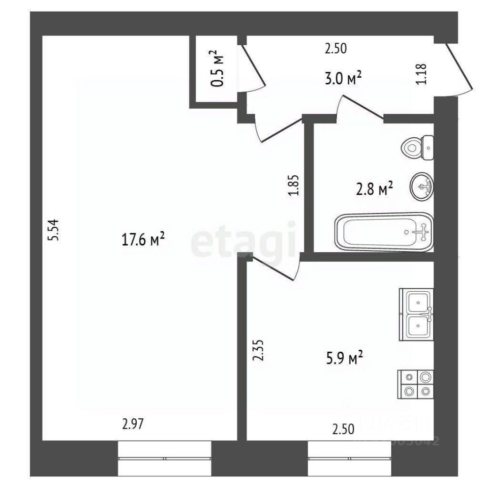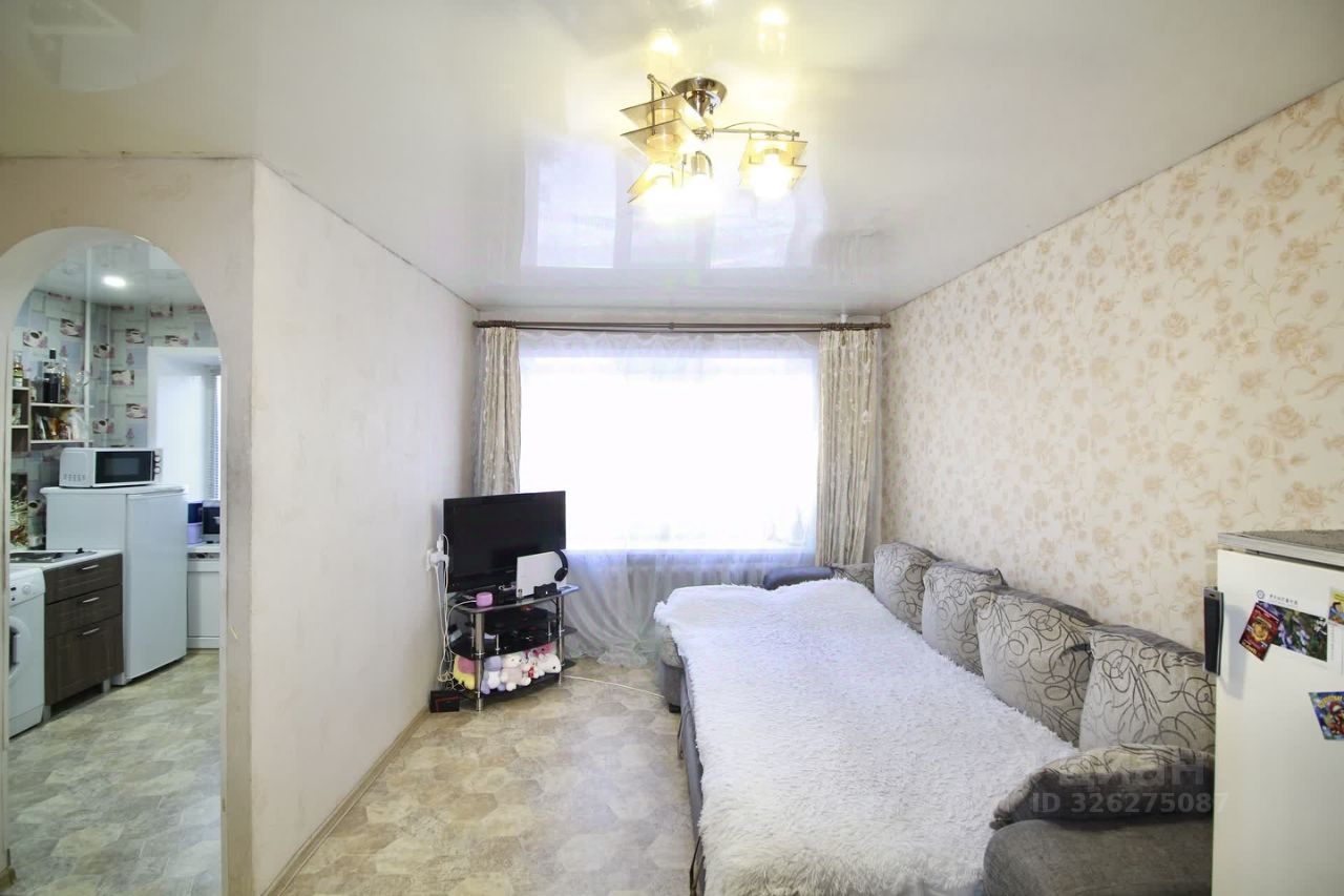 Планировка: Стандартная схема размещения помещений включает кухню размером 5.8 квадратных метров, просторную жилую комнату и функциональный санузел, облицованный кафелем.