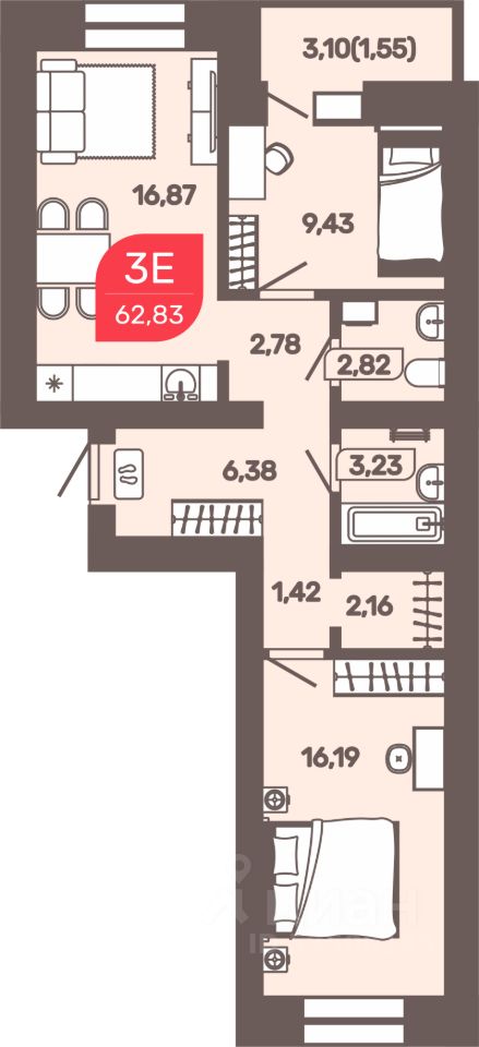 62,83 м²