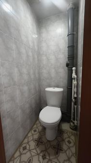 Санузел раздельный в кафеле. Напольное покрытие ламинат, новая надежная входная дверь.