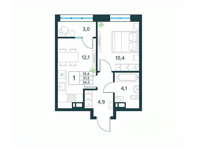 Продается 1-комн. квартира площадью 34,5 кв.м, без отделки. Квартира расположена на 18 этаже 18 этажного монолитно-кирпичного дома (Литер 2 (3 очередь), Секция 1) в ЖК "Хороший" от АТОЛЛ.