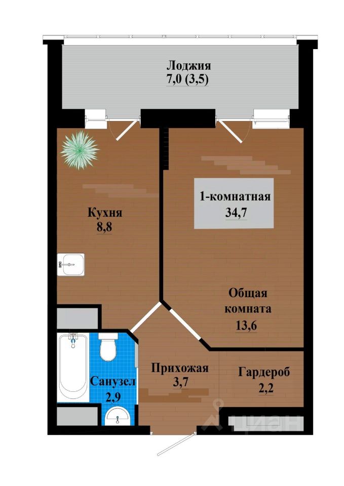 34,7 м²