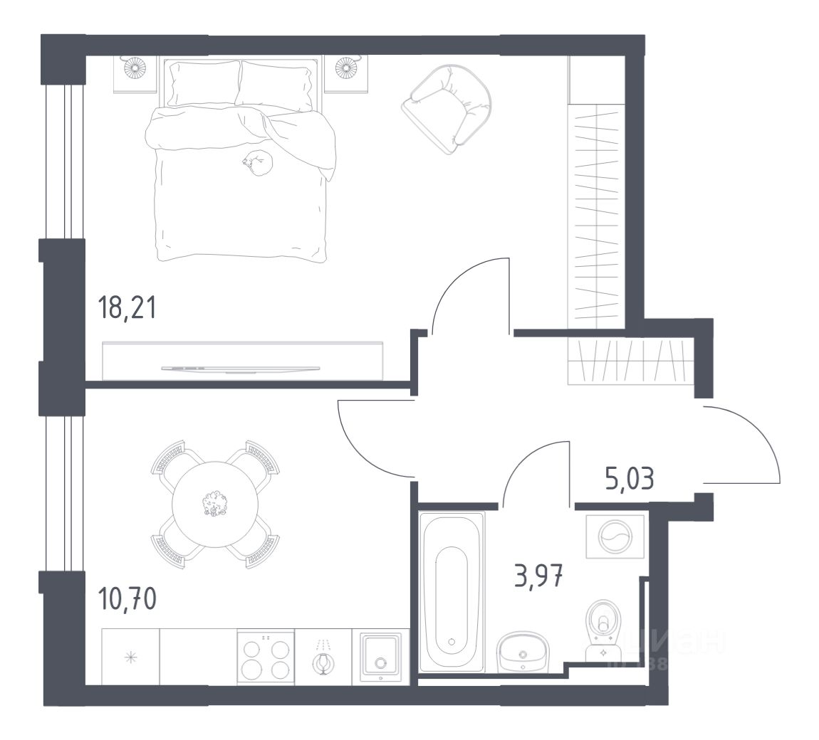 Жилая площадь18,2 м²