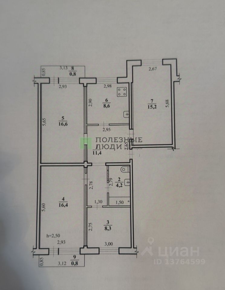 56,5 м²