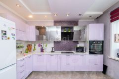 Кухня оборудована гарнитуром с подсветкой рабочей зоны и встроенной техникой (духовой шкаф, варочная панель, вытяжка).