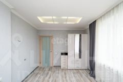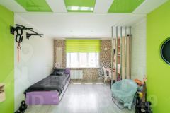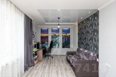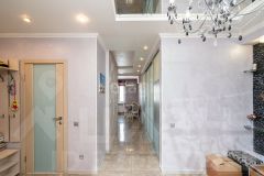 Напольное покрытие - ламинат и керамогранит, натяжные потолки,на стенах декоративная штукатурка, обои.