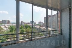 Большая застекленная облагороженная лоджия (на полу кафель, на стенах панели).