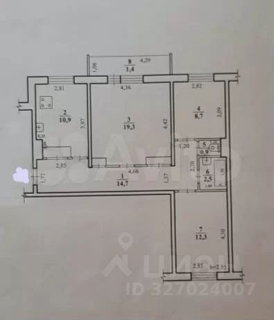Большая кухня. Все комнаты изолированы. С/у раздельный. Окна, балкон ПВХ. В коридоре имеются 4 встроенных шкафа для хранения. Косметический ремонт.