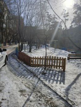Во дворе небольшая детская площадка, дети будут под присмотром