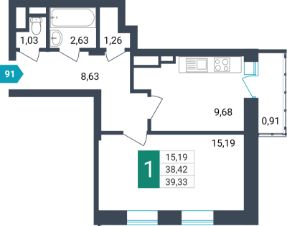 Продаётся 1-комнатная квартира в строящемся доме (Секция 1), срок сдачи: I-кв. 2026, общей площадью 39.33 кв.м., на 16 этаже. Новый жилой комплекс от специализированного застройщика "Мир"