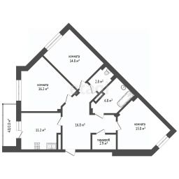 * Планировка: 3 изолированные комнаты (16,2 м², 14,8 м² , 15 м²). Большая кухня - 11 м², гардеробная, 2 санузла.