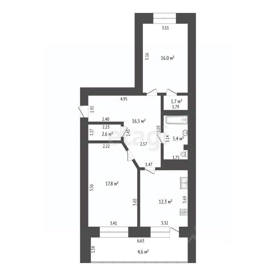 Квартира не угловая, теплая, с окнами на две стороны — во двор и на улицу, что гарантирует хорошую инсоляцию и проветривание. На этаже всего три квартиры. Планировка функциональна: помимо двух изолированных комнат, предусмотрены две гардеробные — в прихожей и спальне. К общей площади добавлена застекленная лоджия 4,6 кв.м. Качественная отделка: ламинат в жилых комнатах, плитка в прихожей, санузле и на лоджии, межкомнатные двери "Волховец". Управляющая компания "Сити-Сервис" предоставляет единую квитанцию для оплаты коммунальных услуг по счетчикам, кроме взносов на капитальный ремонт.