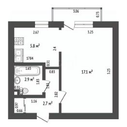 Квартира в кирпичном доме 1985 года постройки, изначально была 1-комнтаная, переделали в студию. Стала больше кухня и более функциональный коридор за счет дополнительного шкафа.