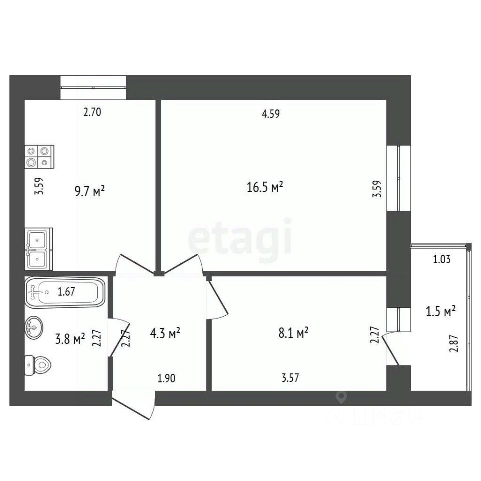 Продумано всё до мелочей — рациональная планировка (распашонка) дает максимум полезного пространства.