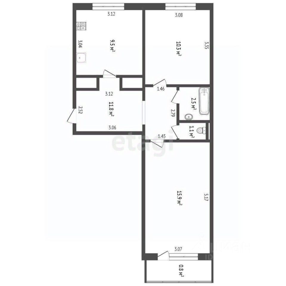 9,6 м²