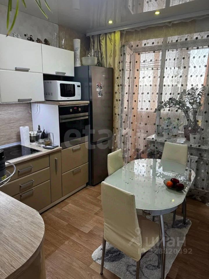 Особое внимание заслуживает просторная кухня площадью 8,6 квадратных метров. Здесь вы найдете все необходимое для комфортного приготовления пищи, включая современный холодильник и стиральную машину. Из кухни открывается выход на застекленный балкон, откуда открывается живописный вид на тихий двор.