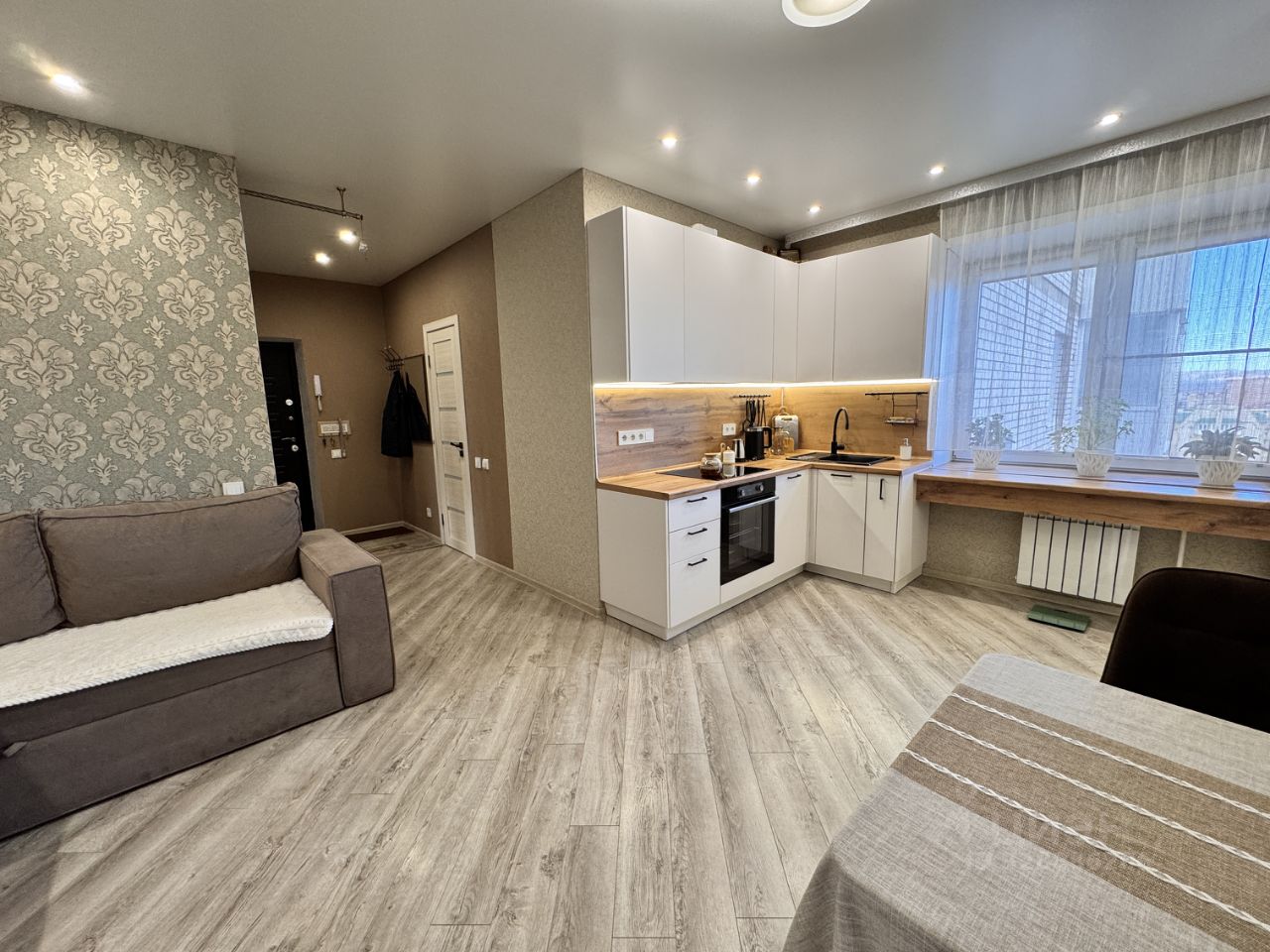• Сделан качественный ремонт в светлых тонах с функциональной вместительной кухней-гостиной и именно по этой причине квартиру можно смело считать евротрешкой.
