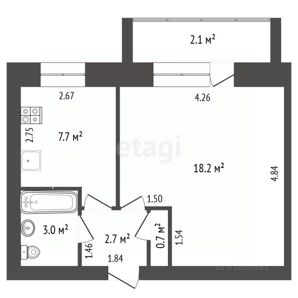 Балкон: Большой, широкий, застекленный.Санузел: Совмещенный (в плитке).
