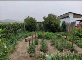 На участке площадь для картофеля, посажены помидоры, капуста, есть малина, смородина.