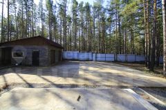 Въезд во двор залит бетоном, на территории два гаража с автоматическими воротами, вольер и новая баня.
